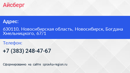 Айсберг по адресу 630110, Новосибирская область, Новосибирск, Богдана Хмельницкого, 67/1 в дальнейшем Организация, размещена в следующих категориях: