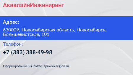 АквалайнИнжиниринг по адресу 630009, Новосибирская область, Новосибирск, Большевистская, 101 в дальнейшем Организация, размещена в следующих категориях: