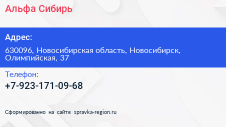 Альфа-Сибирь по адресу 630096, Новосибирская область, Новосибирск, Олимпийская, 37 в дальнейшем Организация, размещена в следующих категориях: