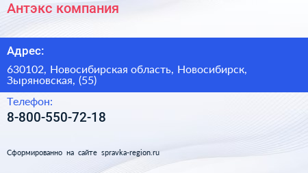 Антэкс, компания по адресу 630102, Новосибирская область, Новосибирск, Зыряновская, (55) в дальнейшем Организация, размещена в следующих категориях: