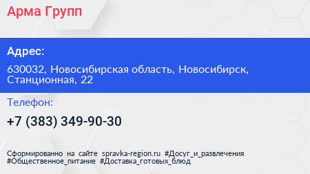 Арма Групп по адресу 630032, Новосибирская область, Новосибирск, Станционная, 22 в дальнейшем Организация, размещена в следующих категориях: