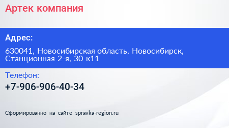 Артек, компания по адресу 630041, Новосибирская область, Новосибирск, Станционная 2-я, 30 к11 в дальнейшем Организация, размещена в следующих категориях: