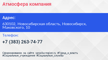 Атмосфера, компания по адресу 630102, Новосибирская область, Новосибирск, Маковского, 10 в дальнейшем Организация, размещена в следующих категориях: