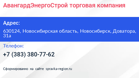 АвангардЭнергоСтрой, торговая компания по адресу 630124, Новосибирская область, Новосибирск, Доватора, 31а в дальнейшем Организация, размещена в следующих категориях: