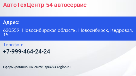 АвтоТехЦентр 54, автосервис по адресу 630559, Новосибирская область, Новосибирск, Кедровая, 15 в дальнейшем Организация, размещена в следующих категориях: