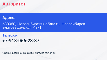 Aвторитет по адресу 630060, Новосибирская область, Новосибирск, Благовещенская, 48/1 в дальнейшем Организация, размещена в следующих категориях: