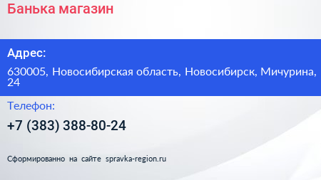 Банька, магазин по адресу 630005, Новосибирская область, Новосибирск, Мичурина, 24 в дальнейшем Организация, размещена в следующих категориях: