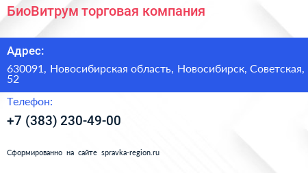 БиоВитрум, торговая компания по адресу 630091, Новосибирская область, Новосибирск, Советская, 52 в дальнейшем Организация, размещена в следующих категориях: