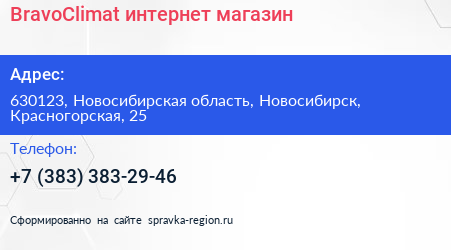 BravoClimat, интернет-магазин по адресу 630123, Новосибирская область, Новосибирск, Красногорская, 25 в дальнейшем Организация, размещена в следующих категориях: