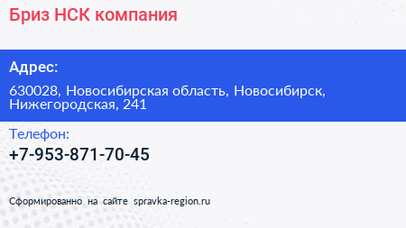 Бриз-НСК, компания по адресу 630028, Новосибирская область, Новосибирск, Нижегородская, 241 в дальнейшем Организация, размещена в следующих категориях: