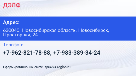 ДЭЛФ по адресу 630040, Новосибирская область, Новосибирск, Просторная, 24 в дальнейшем Организация, размещена в следующих категориях: