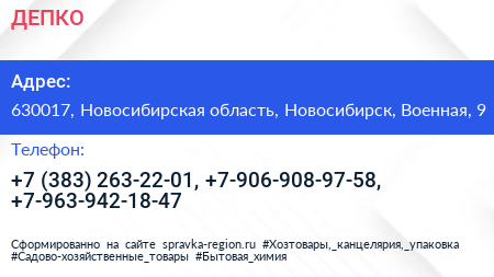 ДЕПКО по адресу 630017, Новосибирская область, Новосибирск, Военная, 9 в дальнейшем Организация, размещена в следующих категориях: