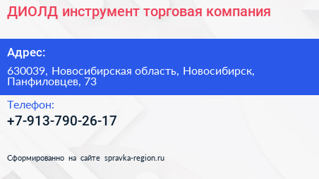 ДИОЛД инструмент, торговая компания по адресу 630039, Новосибирская область, Новосибирск, Панфиловцев, 73 в дальнейшем Организация, размещена в следующих категориях: