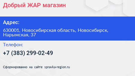 Добрый ЖАР, магазин по адресу 630001, Новосибирская область, Новосибирск, Нарымская, 37 в дальнейшем Организация, размещена в следующих категориях: