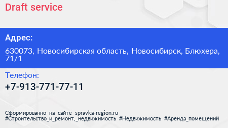 Draft-service по адресу 630073, Новосибирская область, Новосибирск, Блюхера, 71/1 в дальнейшем Организация, размещена в следующих категориях: