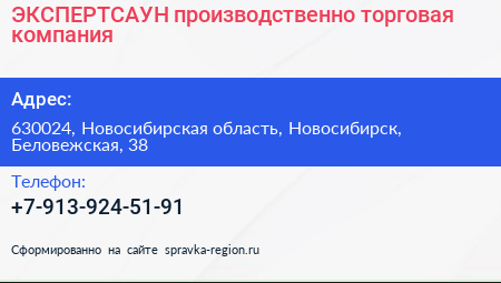 ЭКСПЕРТСАУН, производственно-торговая компания по адресу 630024, Новосибирская область, Новосибирск, Беловежская, 38 в дальнейшем Организация, размещена в следующих категориях:
