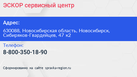 ЭСКОР, сервисный центр по адресу 630088, Новосибирская область, Новосибирск, Сибиряков-Гвардейцев, 47 к2 в дальнейшем Организация, размещена в следующих категориях: