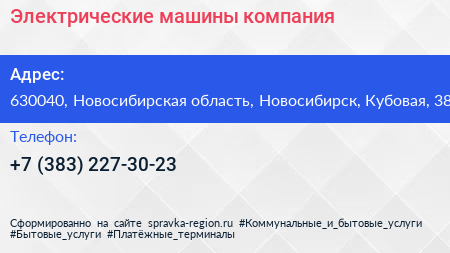 Электрические машины, компания по адресу 630040, Новосибирская область, Новосибирск, Кубовая, 38 в дальнейшем Организация, размещена в следующих категориях:
