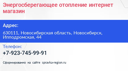 Энергосберегающее отопление, интернет-магазин по адресу 630111, Новосибирская область, Новосибирск, Ипподромская, 44 в дальнейшем Организация, размещена в следующих категориях: