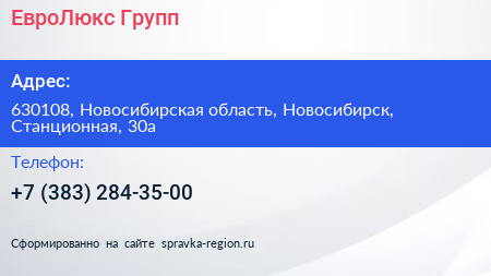 ЕвроЛюкс Групп по адресу 630108, Новосибирская область, Новосибирск, Станционная, 30а в дальнейшем Организация, размещена в следующих категориях: