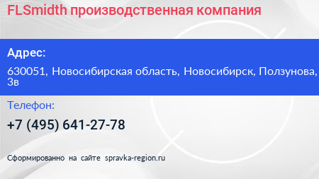 FLSmidth, производственная компания по адресу 630051, Новосибирская область, Новосибирск, Ползунова, 3в в дальнейшем Организация, размещена в следующих категориях: