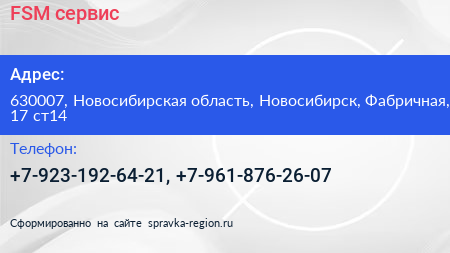 FSM-сервис по адресу 630007, Новосибирская область, Новосибирск, Фабричная, 17 ст14 в дальнейшем Организация, размещена в следующих категориях: