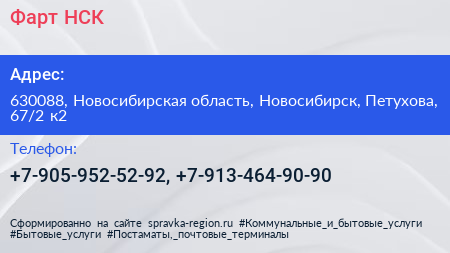 Фарт-НСК по адресу 630088, Новосибирская область, Новосибирск, Петухова, 67/2 к2 в дальнейшем Организация, размещена в следующих категориях: