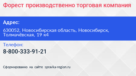 Форест, производственно-торговая компания по адресу 630052, Новосибирская область, Новосибирск, Толмачёвская, 19 к4 в дальнейшем Организация, размещена в следующих категориях: