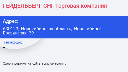 ГЕЙДЕЛЬБЕРГ-СНГ, торговая компания по адресу 630123, Новосибирская область, Новосибирск, Ереванская, 39 в дальнейшем Организация, размещена в следующих категориях: