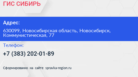 ГИС-СИБИРЬ по адресу 630099, Новосибирская область, Новосибирск, Коммунистическая, 77 в дальнейшем Организация, размещена в следующих категориях: