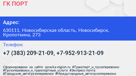 ГК ПОРТ по адресу 630111, Новосибирская область, Новосибирск, Кропоткина, 273 в дальнейшем Организация, размещена в следующих категориях:
