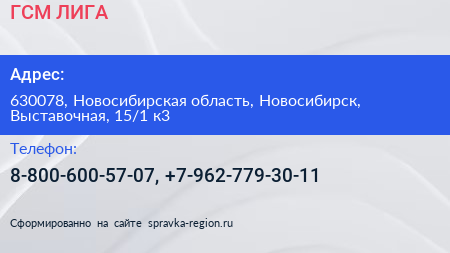 ГСМ-ЛИГА по адресу 630078, Новосибирская область, Новосибирск, Выставочная, 15/1 к3 в дальнейшем Организация, размещена в следующих категориях: