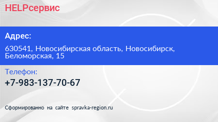 HELPсервис по адресу 630541, Новосибирская область, Новосибирск, Беломорская, 15 в дальнейшем Организация, размещена в следующих категориях: