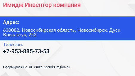 Имидж Инвентор, компания по адресу 630082, Новосибирская область, Новосибирск, Дуси Ковальчук, 252 в дальнейшем Организация, размещена в следующих категориях: