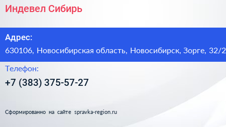 Индевел-Сибирь по адресу 630106, Новосибирская область, Новосибирск, Зорге, 32/2 в дальнейшем Организация, размещена в следующих категориях: