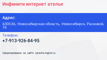 Инфинити, интернет-ателье по адресу 630136, Новосибирская область, Новосибирск, Расковой, 76 в дальнейшем Организация, размещена в следующих категориях: