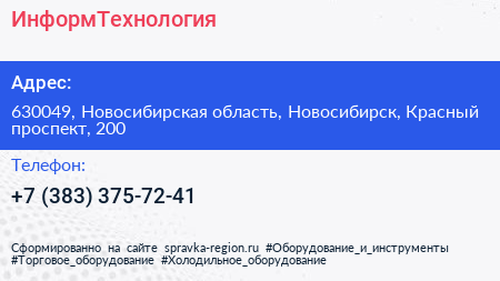 ИнформТехнология по адресу 630049, Новосибирская область, Новосибирск, Красный проспект, 200 в дальнейшем Организация, размещена в следующих категориях: