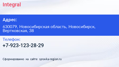 Integral по адресу 630079, Новосибирская область, Новосибирск, Вертковская, 38 в дальнейшем Организация, размещена в следующих категориях: