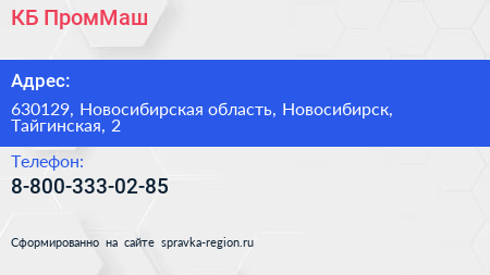 КБ ПромМаш по адресу 630129, Новосибирская область, Новосибирск, Тайгинская, 2 в дальнейшем Организация, размещена в следующих категориях: