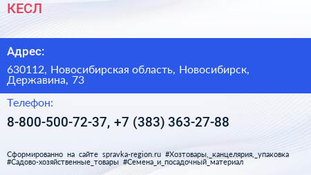 КЕСЛ по адресу 630112, Новосибирская область, Новосибирск, Державина, 73 в дальнейшем Организация, размещена в следующих категориях: