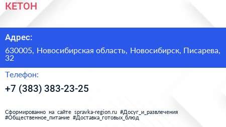 КЕТОН по адресу 630005, Новосибирская область, Новосибирск, Писарева, 32 в дальнейшем Организация, размещена в следующих категориях: