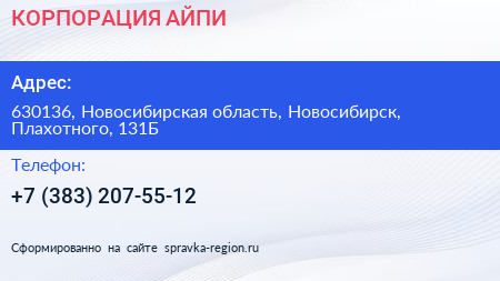 КОРПОРАЦИЯ АЙПИ по адресу 630136, Новосибирская область, Новосибирск, Плахотного, 131Б в дальнейшем Организация, размещена в следующих категориях: