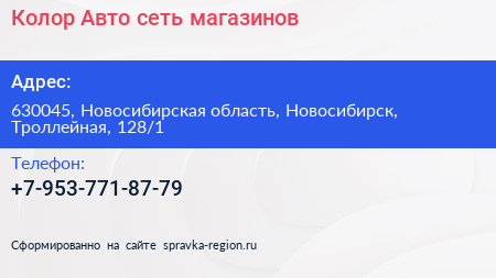 Колор Авто, сеть магазинов по адресу 630045, Новосибирская область, Новосибирск, Троллейная, 128/1 в дальнейшем Организация, размещена в следующих категориях: