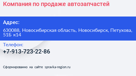 Компания по продаже автозапчастей по адресу 630088, Новосибирская область, Новосибирск, Петухова, 51Б к14 в дальнейшем Организация, размещена в следующих категориях: