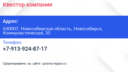 Квестор, компания по адресу 630007, Новосибирская область, Новосибирск, Коммунистическая, 35 в дальнейшем Организация, размещена в следующих категориях: