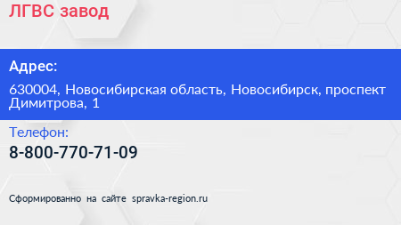 ЛГВС, завод по адресу 630004, Новосибирская область, Новосибирск, проспект Димитрова, 1 в дальнейшем Организация, размещена в следующих категориях:
