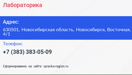 Лабораторика по адресу 630501, Новосибирская область, Новосибирск, Восточная, 4/1 в дальнейшем Организация, размещена в следующих категориях: