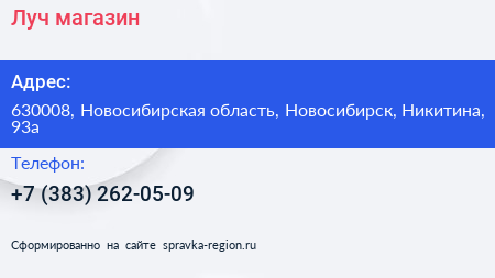 Луч, магазин по адресу 630008, Новосибирская область, Новосибирск, Никитина, 93а в дальнейшем Организация, размещена в следующих категориях: