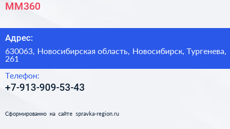 ММ360 по адресу 630063, Новосибирская область, Новосибирск, Тургенева, 261 в дальнейшем Организация, размещена в следующих категориях:
