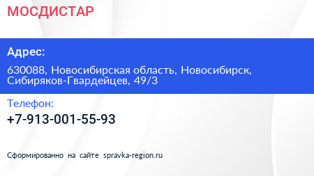 МОСДИСТАР по адресу 630088, Новосибирская область, Новосибирск, Сибиряков-Гвардейцев, 49/3 в дальнейшем Организация, размещена в следующих категориях: